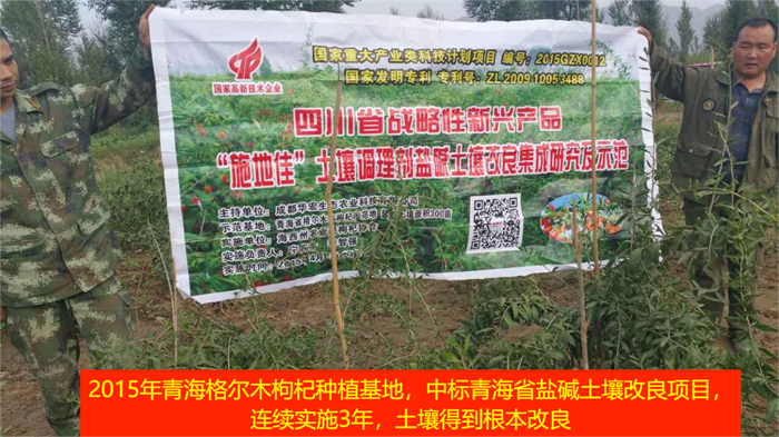 2015年青海格爾木枸杞種植基地,中標(biāo)青海省鹽堿土壤改良項(xiàng)目連續(xù)實(shí)施3年,土壤得到根本改良
