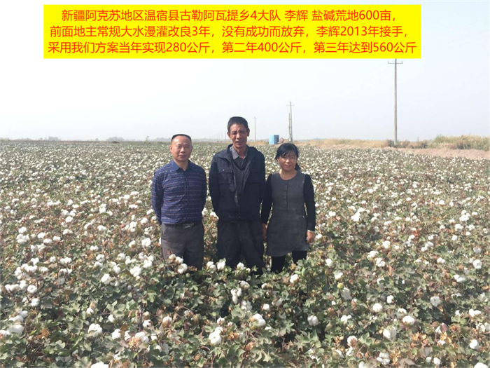 新疆阿克蘇地區(qū)溫宿縣古勒阿瓦提鄉(xiāng)600畝采用華宏方案當(dāng)年實(shí)現(xiàn)280公斤,第二年400公斤,第三年達(dá)到560公斤