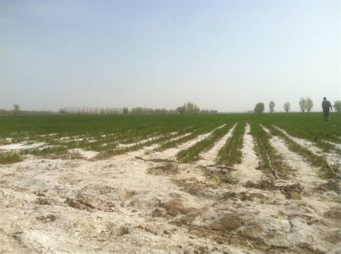 2012年,“施地佳”鹽堿土壤改良劑在新疆兵團103團重度鹽堿地第二年成功種植冬小麥圖 2014/2/16 華宏生物 2012年,“施地佳”鹽堿土壤改良劑 在新疆兵團103團重度鹽堿地第二年成功種植冬小麥圖 圖片編輯:陽光