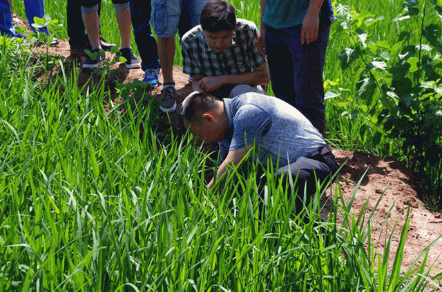 圖3:公司員工親自到稻田察看超級稻分蘗情況