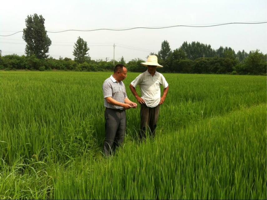 入夏以來,成都華宏生態(tài)農(nóng)業(yè)科技有限公司總經(jīng)理李智強先后趕往四川鹽源縣、甘肅張掖市等地方,前幾天(2014年7月7日)又應(yīng)湖北省孝南區(qū)農(nóng)業(yè)局的邀請,帶領(lǐng)公司技術(shù)員趕到該地察看連續(xù)3年公司生產(chǎn)的“施地佳”土壤調(diào)理劑在水稻上的試驗示范情況。在孝南區(qū)農(nóng)業(yè)局劉春清局長和農(nóng)業(yè)局土肥站陶小娥站長的陪同下,頂著酷暑,親臨試驗地察看和訪問,其心可見,其情可嘉。不辭辛勞為哪般,只為土壤改良作貢獻!