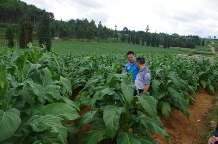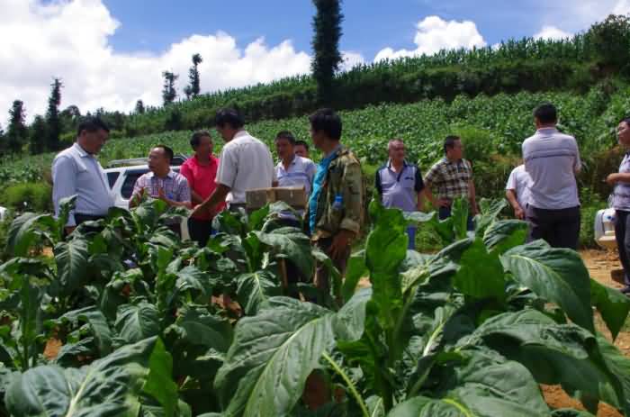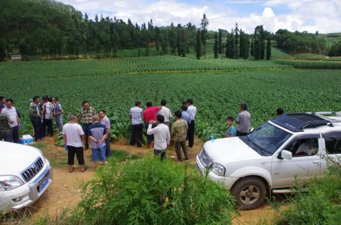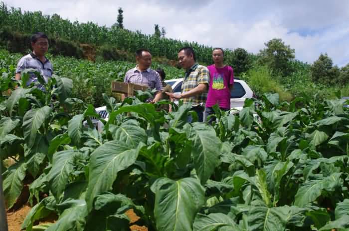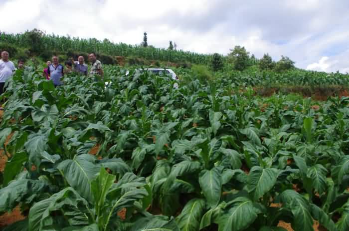 為了解自己的產(chǎn)品對酸化土壤的改良效果和產(chǎn)品質(zhì)量因素,成都華宏生態(tài)農(nóng)業(yè)科技有限公司總經(jīng)理李智強,先于2014年4月親臨云南省麻栗坡縣(中越邊境縣)的試驗示范地,在當?shù)赝练屎蜔熆撇块T的主持下,召開使用示范現(xiàn)場會,在他們的引領下,實地指導用戶使用“施地佳”土壤調(diào)理劑。因效果明顯,在當?shù)責熆撇块T的建議和邀請下,李總又于7月19日,驅車趕到云南麻栗坡縣參加當?shù)責熆撇块T組織的效果現(xiàn)場會,并與煙農(nóng)們進行了廣泛的交流。李總看見自己開發(fā)的產(chǎn)品讓煙苗長得枝粗葉大,再大的勞苦也被拋在了腦后。