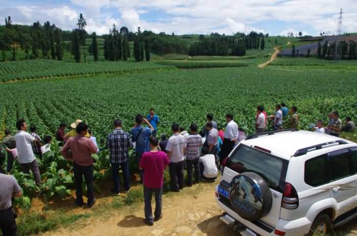 煙科院專家張曉海教授在給煙農(nóng)介紹煙科院連續(xù)三年使用我公司產(chǎn)品的實際效果