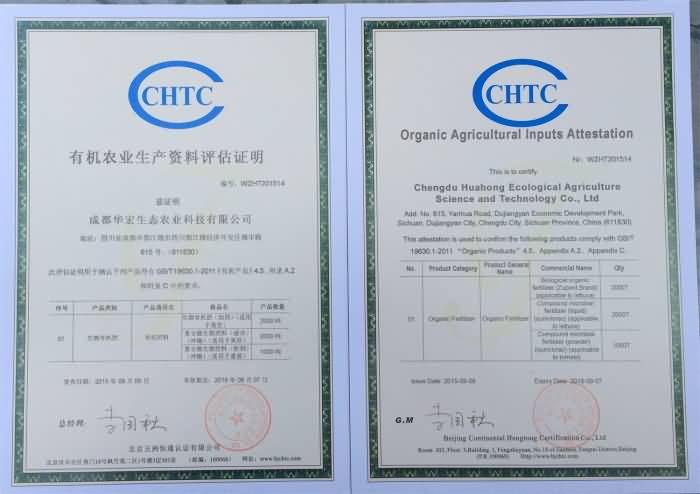 今年9月初,成都華宏生態(tài)農(nóng)業(yè)科技有限公司通過(guò)對(duì)國(guó)家有機(jī)農(nóng)產(chǎn)品認(rèn)證的標(biāo)準(zhǔn)的自我衡量,向國(guó)家認(rèn)證權(quán)威機(jī)構(gòu)申請(qǐng),經(jīng)過(guò)嚴(yán)格的認(rèn)證考核,獲得以下三個(gè)產(chǎn)品的有機(jī)認(rèn)證:(1)“助邦”牌生物有機(jī)肥、(2)“神鋤”復(fù)合微生物肥料(液體)、(3)“神鋤”復(fù)合微生物肥料(粉劑),這是我公司長(zhǎng)期以來(lái)倡導(dǎo)和注重生產(chǎn)綠色產(chǎn)品,保障民眾健康的理念的結(jié)果。