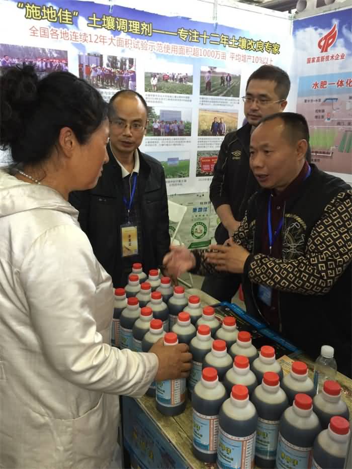 成都華宏生物科技有限公司本次參展主題是:“重視土壤改良、倡導(dǎo)科學(xué)用肥”,大力發(fā)展有機(jī)新型肥料,推出了公司的主打產(chǎn)品“施地佳”土壤改良劑和“神鋤”復(fù)合微生物菌肥。