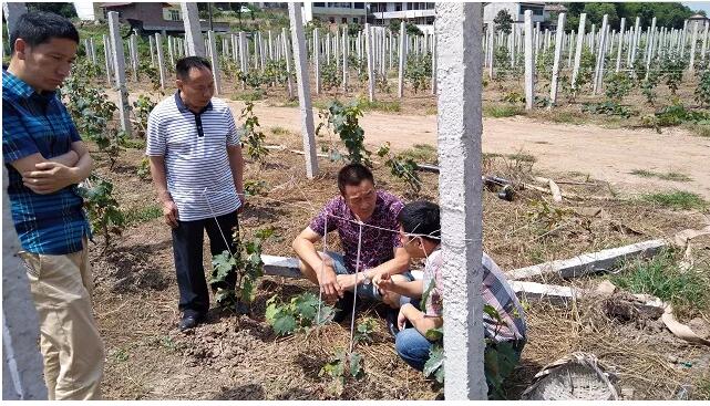 參觀考察隊伍一行人在參觀成都華宏生物公司過后,直接前往水肥一體化示范基地,在現(xiàn)場勘測了葡萄、柑橘、火龍果、柚子果園基地,經(jīng)過實地考察得出更合理的方案,并依據(jù)水肥一體化的實際需求,進行規(guī)劃設計滴管設施方案。在參觀結(jié)束后,結(jié)合富順縣農(nóng)業(yè)局推廣水肥一體化化肥減量增效示范項目,徐德??偨?jīng)理于6月16日將新的設計方案交給了陳總,獲得陳總的高度認可,并邀請陳總一行人于6月17日再次來到成都華宏公司蒞臨參觀考察。
