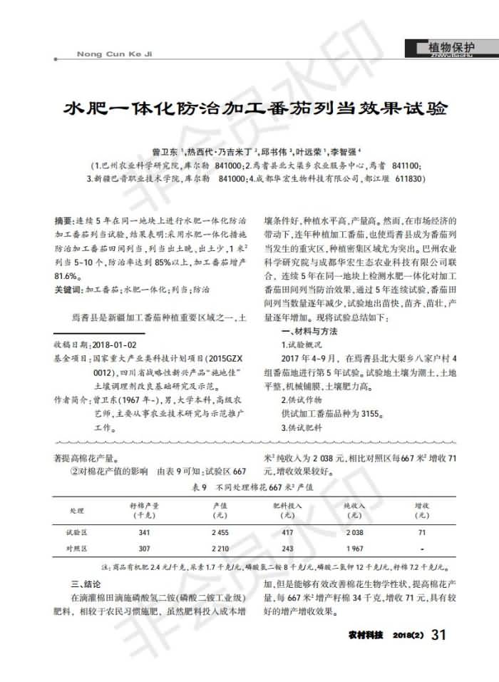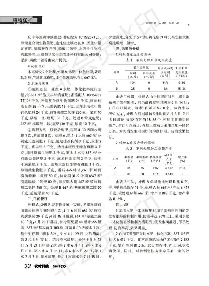 水肥一體化防治加工番茄列當(dāng)效果試驗(yàn)