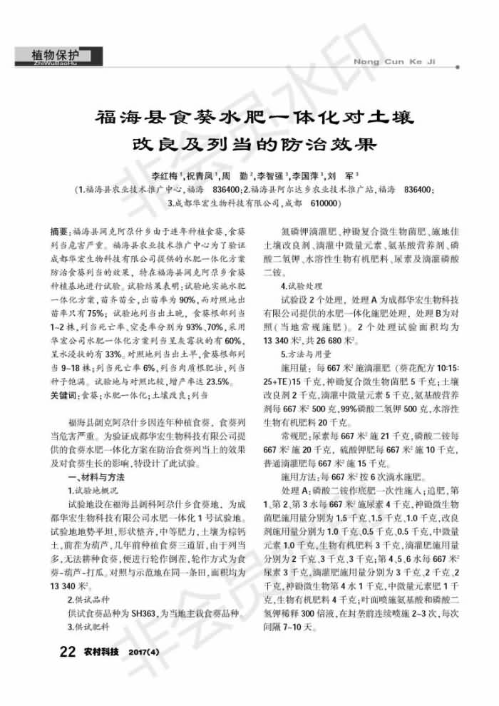 福海縣食葵水肥一體化對土壤改良及列當(dāng)?shù)姆乐涡Ч?/h1>
