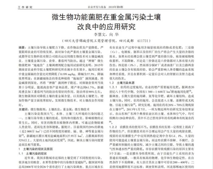 微生物功能菌肥在重金屬污染土壤改良中的應(yīng)用研究