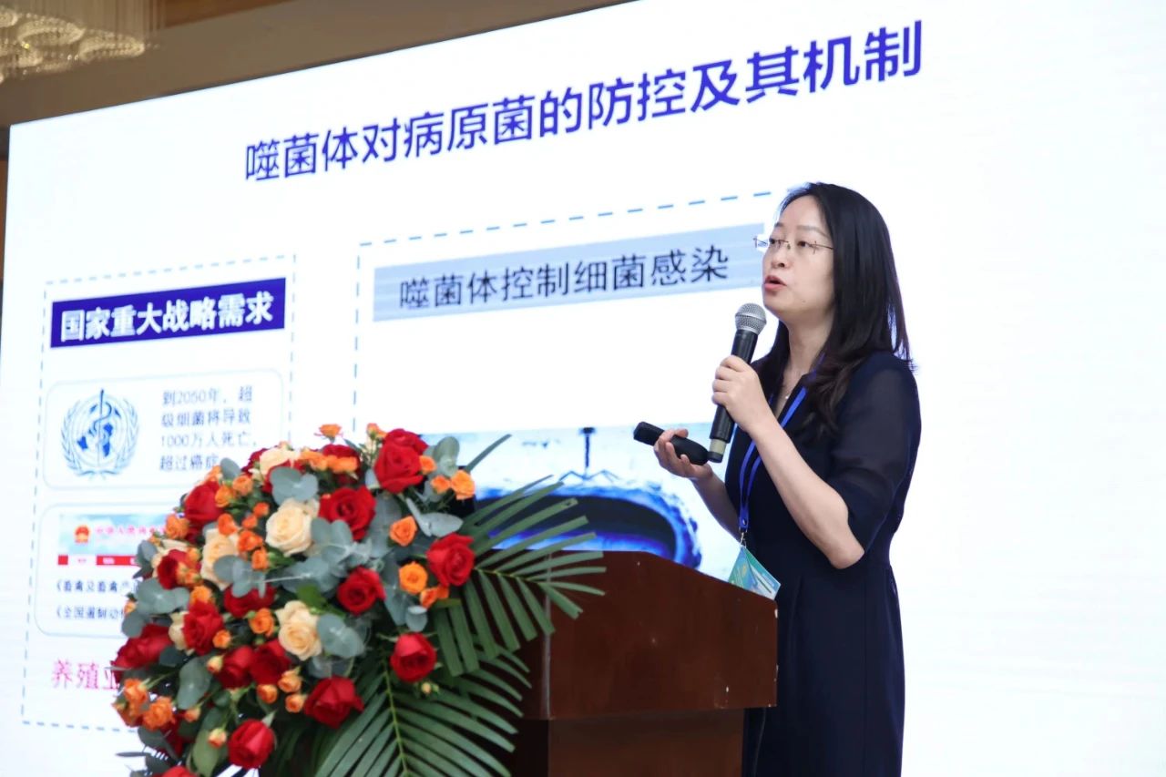 會(huì)議報(bào)告精彩紛呈,因時(shí)間所限,每位報(bào)告嘉賓的分享時(shí)間都是25分鐘,在主持人曹永長(zhǎng)教授(中山大學(xué))風(fēng)趣的話語(yǔ)中,上午的報(bào)告迎來(lái)了尾聲。來(lái)自南京農(nóng)業(yè)大學(xué)的湯芳教授作了《噬菌體對(duì)致病性大腸桿菌的防控及其機(jī)制》的報(bào)告。