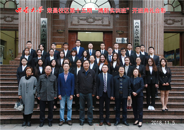 2018年11月5日,西南大學(xué)第十五期“博新實訓(xùn)”班開班典禮暨開班第一講在榮昌校區(qū)2309會議室隆重舉行,西南大學(xué)榮昌校區(qū)管委會主任左福元、成都思來生物科技有限公司董事長王峰、西南大學(xué)榮昌校區(qū)管委會副主任趙智華、西南大學(xué)榮昌校區(qū)教務(wù)主任曾仁權(quán)等領(lǐng)導(dǎo)出席開班典禮。
